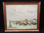 CARADEC Gabriel (1920-2004) - Scène de port, huile sur toile signée en bas à droite. (dim : 44x53 cm) (usures)