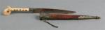 56 - Petit poignard Turc, poignée à oreilles en os à cabochons en corail (manques), avec fourreau à garnitures en laiton (à nettoyer)