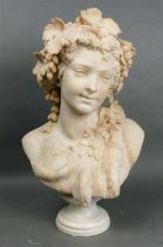 CARRIER-BELLEUSE Albert (1824-1887) : Buste de Bacchante sur piédouche. Marbre blanc sculpté, signé et daté 1868. Haut: 59 cm