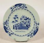 108 - CHINE - Trois assiettes en porcelaine blanche décorée en bleu sous couverte de rochers fleuris, cerf et pin. Epoque QIANLONG (1736 - 1795).