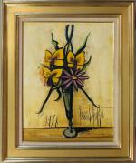 Bernard BUFFET (1928-1999) : Bouquet de fleurs, 1978. Huile sur toile, signée vers le bas à droite et datée vers le bas à gauche, 65 x 50 cm