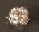 Bague en or gris 18K 750 millièmes, ornée au centre d'un diamant coussin de taille ancienne, pesant 11,06 ct., couleur K, pureté VS 2, fluorescence faible, (manque au diamant). Tour de doigt : 56,5. Poids brut : 6 g.