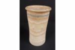 EGYPTE : Important vase tubulaire en albâtre rubané, bord ourlé, fin du Nouvel Empire. Haut. 26 cm. -Diam au col 15 cm. Experts : Mr ROUDILLON et Mme P. REBOURS Tél 01.42.22.85.97