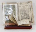 [ALMANACHS]. Réunion de 6 almanachs populaires. 6 vol. in-16 à in-12, demi-reliures modernes, sauf un broché. Almanach nouveau pour l'année bissextile mil sept cens vingt-huit. [] Calculé sur le Meridien de Paris, & supputé par Claude Ternet champenois. Troyes, Veuve de Jacques Oudot, & Jean Oudot fils, 1728.