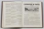 [DUFOUR-D'ASTAFFORT, AUFAUVRE (Amédée)]. L'Exposition de Troyes illustrée. Journal du concours régional des départements de l'Est [] et de l'Exposition de Troyes. Troyes, Bouquot et Dufey-Robert, 1860 ; pet. in-folio, demi-chagrin aubergine, plats de percaline de même couleur, dos à nerfs orné de motifs dorés, [Rel. de l'époque], dos un peu frotté. Réunion des 16 numéros de cette publication, avec en plus le numéro-prospectus et le supplément au n° 16. Envoi autographe signé de Dufour-d'Astaffort à M. H. Argence. Ex-libris Jean Darbot. On joint quelques documents imprimés