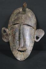 MASQUE composé à partie d'éléments anciens en écaille de tortue à une époque tardive dans la région du détroit de Torres en Océanie. Haut : 25 cm