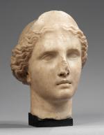 Lot 54 Tête d'une divinité féminine, possiblement Aphrodite, coiffée d'un diadème, en marbre. Fin de la période héllénistique ou début de la période romaine.
