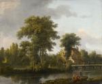 399 - PIERRE HENRI DE VALENCIENNES (TOULOUSE 1750 PARIS 1819) - PECHEURS AU BORD DE LA RIVIERE PRES DU MOULIN A EAU - TOILE 37.5 X 46 CM - TRACES DE SIGNATURE ET DE DATE EN BAS A DROITE APH 1791