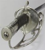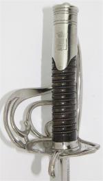 Sabre du Général de Division d'Édouard de Curières de Castelnau, modèle de fantaisie. Poignée en corne, avec filigrane. Monture en métal blanc, inspirée de celle du sabre d'Officier de Maréchaussée, modèle 1787. Calotte à courte queue, avec armoiries de la famille du Général. Garde à une branche principale, quatre secondaires. Lame droite, à deux tranchants, gouttières dissymétriques, marquée au talon « Bailhache et Chardon Paris ». Fourreau à un bracelet en fer nickelé, avec couvre-fourreau en cuir. BE (nickelage du fourreau en partie usée)