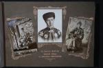 SOUVENIRS de TELEMAQUE REGNARD : Intéressant Album in-folio à l'italienne légendé : "SOUVENIR D'UN SEJOUR EN INDOCHINE 1933-1936 (vraisemblablement composé par Télémaque REGNARD) : Album de photographies, pastels et aquarelles dont la quasi-totalité d'intérêt géographique, ethnographique, pittoresque, comprenant 12 PASTELS OU AQUARELLES signés DAYEZ, légendés : Paysanne Tonkinoise - Jeune Hanoïenne - Bonze Tonkinois en tenue de cérémonie - Mandarin annamite - Paysan du Delta Tonkinois - Laboureur tonkinois dans sa rivière - Femme "Man-Ta-Pan" du Haut-Tonkin - Jeune femme "Man-Ta-Pan" du Haut-Tonkin - Jeune femme "Méo" du Haut-Tonkin - Femme Moï - Vieux lettrés Tonkinois environ 29 x 22 - 19 x 27 et ENVIRON 440 PHOTOGRAPHIES contre-collées en plein, de tailles diverses, pour la grande majorité légendées, dont deux photos représentant SA MAJESTE BAO-DAI, empereur d'Annam et une photo de l'IMPERATRICE NAM-PHUONG, signées Houng-Ky, photographe à Hanoï - HANOI : photos aériennes, rue Paul Bert, pagode de Môt-Tôt - LAC BA-BE : différents aspects - HAUT-TONKIN : PHONG-THO : femme Peu-Méo, indigènes de Coc-Leu, types Muong, femmes Thay, Pakha, femmes "Méo-Hoa", groupe "Man Coc", jeune femme "Man Tiên", PHONG-THO : femme Yao-Tin-Pan coiffure de mariée, rivière de Pakha, chutes de Ban-Gioc, femme Méo et joueurs de Ken, femmes "Sa-Pho", femme "Thaï", coucher de soleil sur la rivière - LANG SON : Entrée grotte de Nhi-Thanh, tissage chez les "Méos", indigènes des environs de Pakha, jeune femme "Thaï", chez les "Thaï", le fiancé et son ami, occupation familiale - RACES du HAUT-TONKIN : Cao Bang : Man-Coc, Méo-Hoa, Man-Tiên - Man Méo - BONZES : Man Chàm - Les "MANS" - RACES du HAUT-TONKIN - Ha-Giang : Man-Ta-Pan, Man-Chàm ,Méo blanc, femme "Thô" - HAUT-TONKIN : Chapa : Lang-Song : vue panoramique, "Méo noire", femme "Méo", "Méo" blanc", "Méo-Hoa", Méo Trang xa-Càn" - TONKIN : Hoa-Binh : Col de Déo-Ma-Phùc, Man-Son-Dâu - CHAPA - HOA-BINH - TUYEN QUANG : Man-Ta-Pan, Méo Hoa, groupe de "Muongs", "Muongs" joueurs de gongs ; Lao-Kay jeune fille Thô ; Hoa-Binh ; Man en culotte ; Cao-Bang, femme Kha ; Hoa-Binh, femme Man ; Lao-Kay, Méo de Chapa ; femmes Nungs ; Lao-Kay, Méo de Chapa ; Lao-Kay, musiciens Méos ; Hoa-Binh, jeune fille de Muong ; Phong-Thaï, jeune fille Thaï ; Cao-Bang Moi ; Lang-Son, Man-Han-Tiên ; danseuses de Lai-Chân ; Phong-Son, jeune fille Thaï - TONKIN : Jeune gens costumés à l'antique figurant les guerrier du Génie Dong ; scènes de luttes à mains plates - HUE : Famille d'un mandarin, bécon portant des paniers, femmes chargées de la garde du tombeau de l'Empereur de Minh-Mang ; HANOI : pagode de Hoa-Ma un bonze en tenue, arbre jacquier et fruit - HAUT-TONKIN : vues aériennes de Long-Son et de Cao-Bang, gorges de la Rivière Noire, stations estivale de Tam-Dao - BAIE D'ALONG : vue panoramique, rochers, vues diverses, village de pêcheurs, Hongay - HUE : le Palais Royal, jeunes femmes tonkinoises, pileuses de riz, femme Moï, mandarin et mandarin en tenue de cérémonie, pêcheurs de Sâm-Son, fête au village, lutteurs, natation chez les jeunes "Mois" - PLAGE de SAM-SON : différentes scènes de pêche - TONKIN : fête villageoise à DUONG-LIEU, paysans costumés en guerriers antiques ; Ban-Mé-Thuôt, type Radé, Hanoï, sorcier aux cheveux agglutinés ; Ban-Mé-Thot : exercices des jeunes Mois ; baignades des jeunes Mois - HANOI : coucher de soleil sur le Grand Lac ; Pagode des corbeaux, fête à la pagode de Lim ; la bonne aventure ; rizières à Hadong - FETE DU TET : Présentation des voeux , repos autel des ancêtres, éventaire d'objets votifs en papier, marchande de sentences, sorcière devant l'autel des ancêtres, jeune laotienne - PAYS MOI, CHASSEURS D'ELEPHANTS : Femmes de mandarin à HUE, leure annamite, bonze annamite - HANOI : Pagode du grand Bouddha, marché aux fleurs au Petit lac, laboureur dans sa rizière : HUE : rivière des parfums, jeunes femmes. Cultivateur du Delta, vannerie tonkinoise, coiffeur ambulant, atelier de bijouterie, cérémonie et autel aux génies - L'EMPEREUR BAO-DAI et le Grand Pasquier au Tonkin ; HANOI : le musée Louis Finot, le théâtre municipal ; pont de lianes, pont aux bambous, récolte du riz, chemin entre rizières, brouette annamite, tombeaux de bonzes, jeunes porteurs d'eau - SAIGON : la rue Catinat, le Grand Marché les quais sampans sur la rivière de Thu Duc, marchande de noix d'arec, de mangoustans et ananas, jardin botanique, vues diverses - HUE : le PALAIS ROYAL, entrée du Palais, cour intérieure, les urnes dynastiques - CAMBODGE - Les RUINES d'ANGKOR : le temple d'Angkor Wat, vu d'avion, coucher de soleil, porte de la façade sud, angle sud-ouest, façade extérieure, le Roi lépreux, végétation tropicale à Angkor ; SIEMP-REAP, la rivière ; statue de Vishnou, détail d'une tour, vue d'une tour du Temple, bas-relief ; SIEM-REAP : le bayon détail d'une tour, noria sur la rivière ; ANGHOR grand bouddha dans la forêt ; famille et jeune femme cambdgienne - PHNOM-PENH : pagode d'argent ; danseuses cambodgiennes, danseurs cambodgiens, types cambodgiens - Types "MOIS" du SUD-ANNAM - LA CHINE : environs de Yunnanfou, femmes du Yunnam, intérieur pagode, marchand de canard, mandarins en promenda, exécution de pirates, têtes de pirates suspendues, acteurs chinois, temple de Confucius, costume Mandchou, femmes, cour intérieure - PAGODES à YUNNANFOU : Aspect de Yunnanfou, ACTEURS CHINOIS, marques - TOURANE : pagode dans la montagne de marbre, génies dans une pagode chinoise - TYPES : femmes "Nung", "Thô", "Màn", "Màn Sung", "Thaï", "Méo Den". HAIPHONG : vue aérienne et port ; BACH MOI: arrivée du Général Armengaud, réunion du personnel 1ère escadrille - Ancienne section de photographie aérienne du TONKIN : arbre à "Kapok", arbes "flamboyants" "Banëan". Etat-Major direction de l'Air à Hano