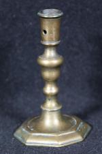 BOUGEOIR en laiton, base octogonale, poinçon au R couronné, époque Louis XIV. Haut. : 16.5 cm.