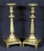Paire de BOUGEOIRS en bronze, base carrée sur quatre pieds,...