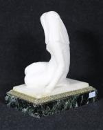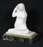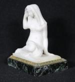 FEMME VOILEE assise en marbre blanc, sur socle en marbre...