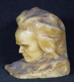 DEPREZ Paul-Gaston (XIX-XXème) - Tête de Beethoven en cire, signée. H. 19 cm.