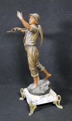 D'après Geo MAXIM - Le Faucheur. Sujet en régule sur un socle en marbre rose...