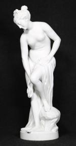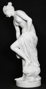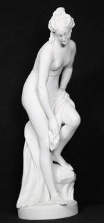 VILLENAUXE, d'après ALLEGRAIN - Baigneuse drapée. Biscuit, signé et marqué sur la terrasse. H. 51 cm