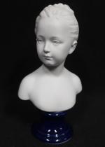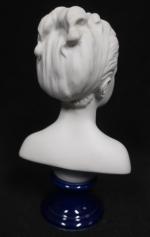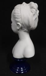 VILLENAUXE, d'après HOUDON : Buste de Louise Brongniard en biscuit, sur piedouche en porcelaine bleue. Haut. : 21 cm