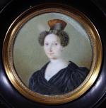 MINIATURE ronde, vers 1830, représentant une jeune femme. Diam. 73...