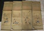 CHINE : Ensemble de quatre peintures verticales à l'encre et couleurs sur papier, représentant des...
