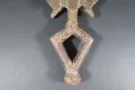 Evocation symbolique d'un ancêtre qu'elle honore, cette figure de gardien de reliquaire « Mbulu Ngulu » est un remarquable témoin du corpus du style classique de l'art Kota.