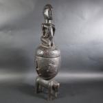Coupe de Hogon « Ogo Banya » reposant sur le dos d'un quadrupède, la panse sculptée de deux lézards et de deux tortues.