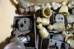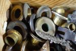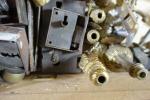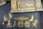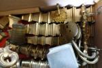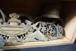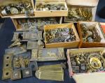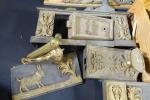 Important lot de bronzes d'ameublement de style Louis XV, Louis XVI et Empire, éléments de chenets, serrure, entrées de serrures, bagues de colonnes, poignées de tirage, sabots, bobèches, etc...