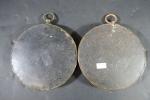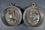 Paire de médaillons ronds en laiton repoussé patiné à l'effigie...