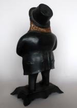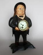 BRADLEY & HUBB - Amusante pendule en fonte de fer polychrome représentant un homme au chapeau, les yeux mobiles, signé sous le socle. H. 40 cm. 22