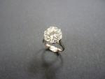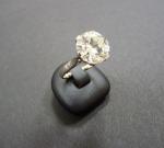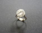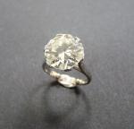 Bague en platine sertie d'un diamant solitaire taille moderne, accompagné d'un certificat du laboratoire Carat Gem Lab à Anvers de Février 2020 indiquant le poids : 4,93 ct. Couleur : K. Pureté : SI1. Pierre à ressertir. Poids de la monture : 4,90 g.