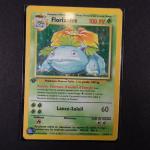 POKEMON. 1 carte Florizarre du SET DE BASE en 1ere Edition en Français, fabriqué par Wizards en 1999. Etat : C (correspond à PLAYED). Légèrement curvée. NB: Etat des cartes visible sur les photos de détails, possibilité d'envoyer sur demande d'autres photos si besoin, nous recommandons de venir examiner le lot sur place lors de l'exposition.