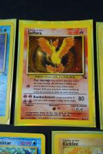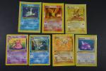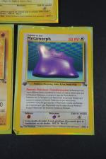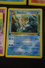 POKEMON. Assortiment de 7 cartes en 1ere Edition et Unlimited de l'Extension FOSSIL en Français, fabriqué par Wizards en 1999 comprenant 5 cartes en 1ere Edition comprenant Metamorph, Flagadoss, Kicklee, Raichu, Amonistar Etat : C (correspondant à PLAYED) et Sulfura Etat : C (correspondant à PLAYED), Lokhlass en Edition Unlimited Etat : C+ (correspondant à LIGHT PLAYED). NB: Etat des cartes visible sur les photos de détails, possibilité d'envoyer sur demande d'autres photos si besoin, nous recommandons de venir examiner le lot sur place lors de l'exposition.