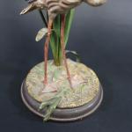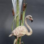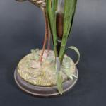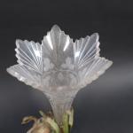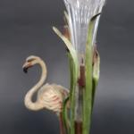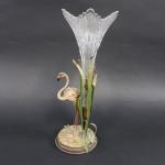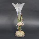 Vase en cristal taillé de forme évasée, la monture en métal en peint à décor d'un flamand rose parmi des roseaux. Haut : 30 cm