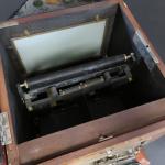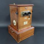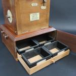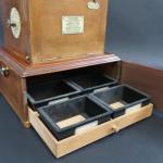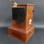 Borne visionneuse stéréoscopique le Taxisphote en acajou, avec quatre paniers (vides) pour ranger les vues. Haut : 50 cm - Larg : 33 x 33 cm