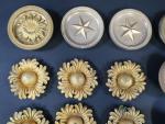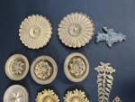 Ensemble de rosaces d'ameublement en bronze doré d'époque Empire. Joint, buste de femme empanachée Régence