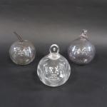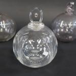 Trois boules de lustre en verre taillé. Diam : 11 et 10 cm