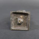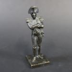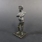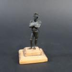 Deux petits sujets en bronze patiné représentant Napoléon 1er debout. Haut. totales : 10,5 et 8,5 (l'un à refixer sur son socle, l'autre socle en bois rapporté)