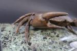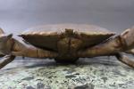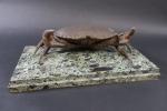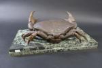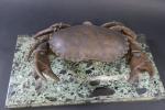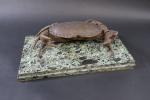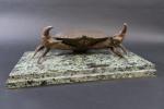 FADY Eugène (XX's) : Encrier en forme de crabe en bronze patiné, la carapace ouvrant et découvrant les deux godets d'encre, et posant sur un socle en marbre vert de mer, signé. Haut : 16 cm - Long : 42 cm - Prof : 21 cm
