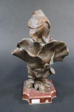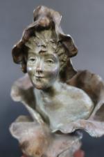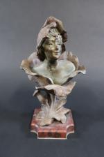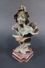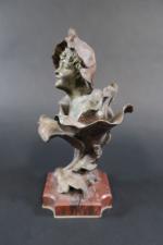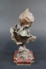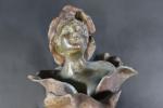 GODET Henri (1863-1936) : Femme-fleur. Bronze patiné signé, sur socle en marbre rouge. Haut. totale : 23 cm (oxydations)