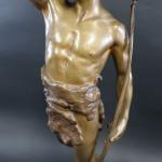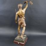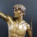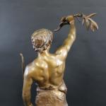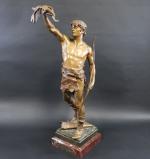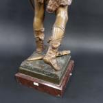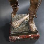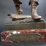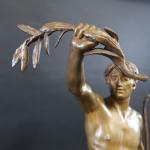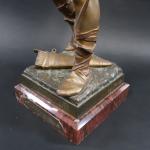 MARIOTTON Eugène (1854-1933) : Vainqueur. Bronze patiné signé, fonte SIOT Paris, sur socle en marbre rouge veiné, portant une plaque "Le groupe de Paris des A.E.T 1933". Haut. totale : 73 cm (éclats à l'arrière de marbre)