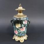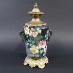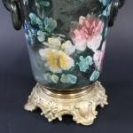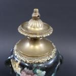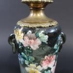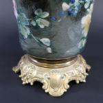 Attribué à MONTIGNY-SUR-LOING : Lampe, le corps en faience à décor "impressionniste" de fleurs, monture en bronze. Haut. totale : 32 cm - Haut. de corps en faience : 18 cm