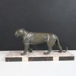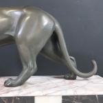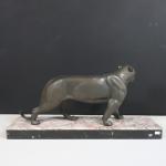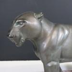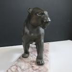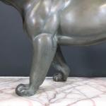 Epreuve en régule patinée sur un socle en marbre veiné deux tons.