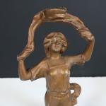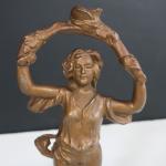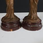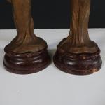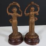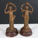 Suite de deux figures en régule à patine dorée, socle en bois peint rouge