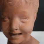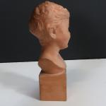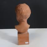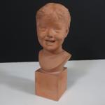 Ecole du XXème d'après Donatello Portrait d'enfant rieur en terre cuite. Hauteur : 27 cm (taches)