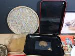 Important lot de plateaux de service en tôle, en plastique, de différents décors (usures).