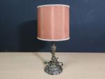 Pied de lampe en bronze de forme à colonne cannelée avec abat-jour orange.