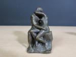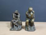 D'après RODIN : deux reproductions en bronze représentant le Penseur et le Baiser (haut : 12 cm)