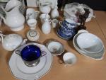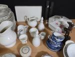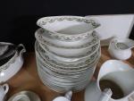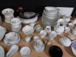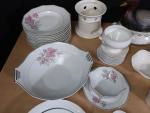 Limoges signé Legrand : service de table en porcelaine à décor de roses, ensemble d'objets de vaisselle en porcelaine blanche, objets divers de vaisselle.