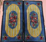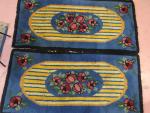 Paire de tapis d'époque Art Déco en laine nouée à décor de boutons de roses (160 X 80) (usures)