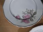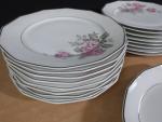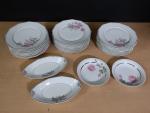 Limoges F.Legrand & Cie : partie de service en porcelaine à décor de roses comprenant : 25 assiettes, 2 coupelles et 2 ramequins.