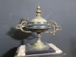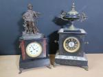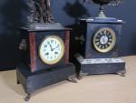 Lot de deux pendules bornes en marbre noir d'époque fin XIXè en bronze et régule (haut : 50 cm), avec clés (bel état général)